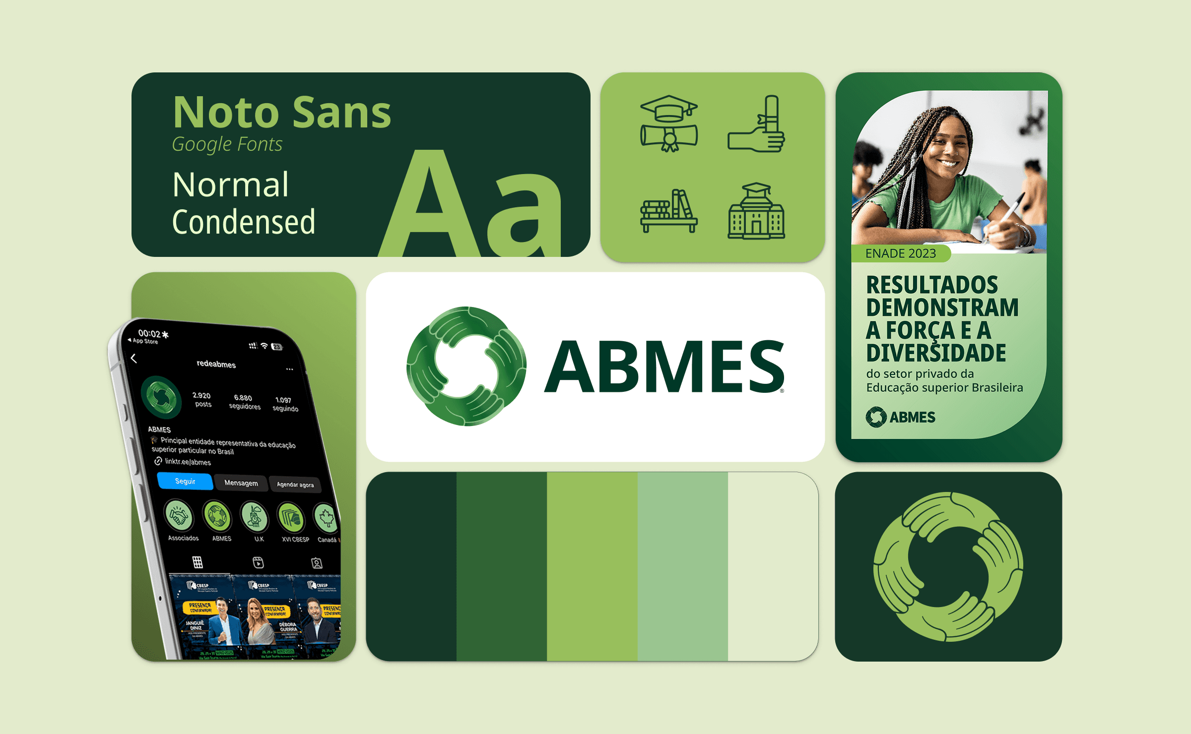 A identidade visual desenvolvida pela Arandu não apenas moderniza a marca ABMES, mas também traduz visualmente seus valores e propósito, fortalecendo sua representatividade no cenário educacional brasileiro.