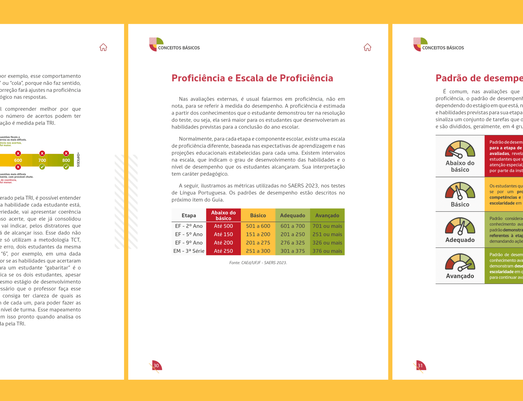 A identidade visual desenvolvida facilita a compreensão do conteúdo técnico e torna o material mais acessível aos educadores e gestores da rede pública estadual. O guia fortalece a capacidade institucional de implementar políticas avaliativas consistentes, traduzindo visualmente a complexidade dos sistemas de avaliação educacional em um material didático e operacionalmente eficaz para diferentes perfis de usuários.