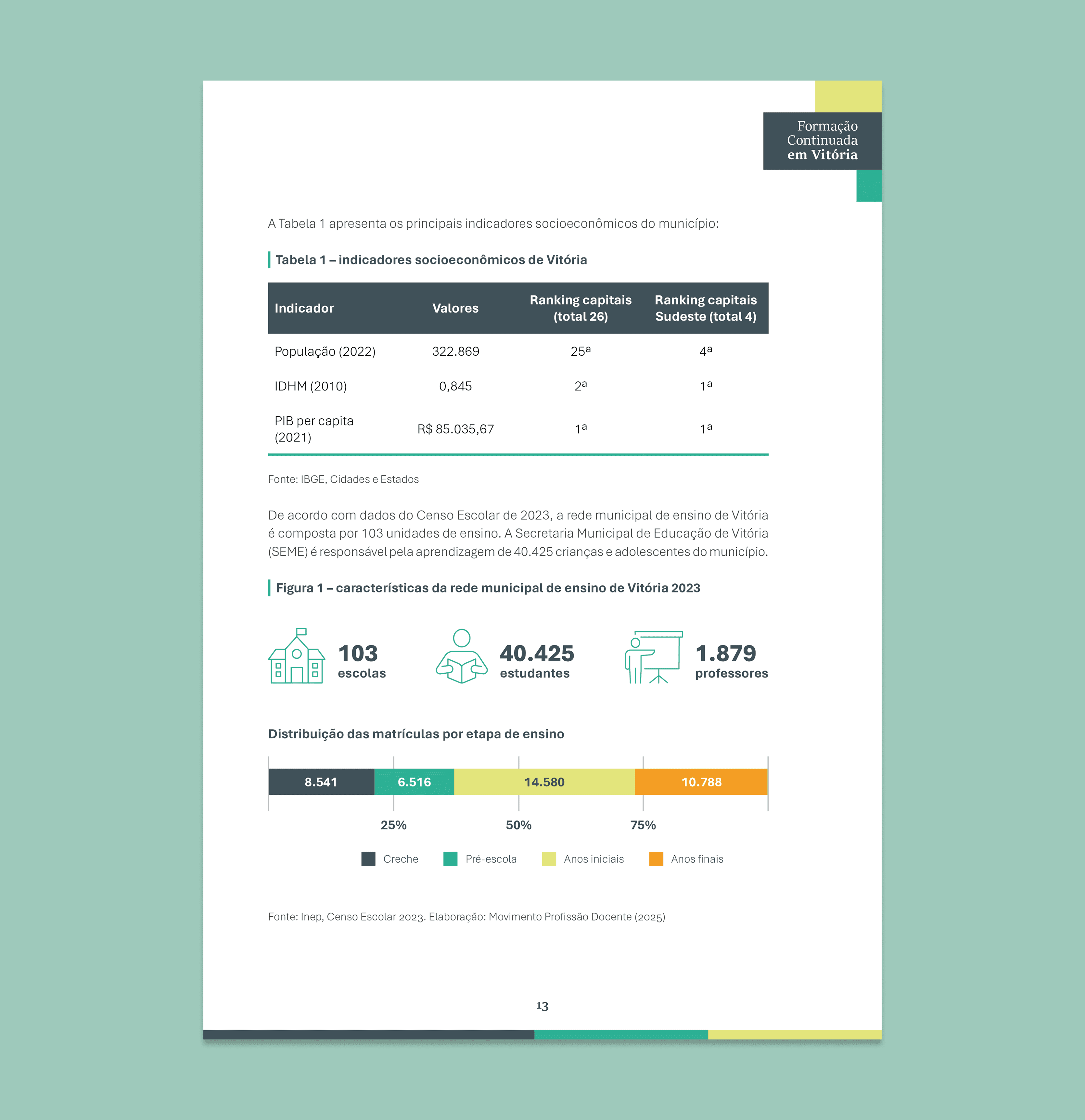 O Movimento Profissão Docente apresenta seu estudo técnico "Formação Continuada em Vitória", uma publicação estratégica que documenta e sistematiza as melhores práticas educacionais implementadas pela rede municipal de educação de Vitória (ES). Este material representa um marco na produção de conhecimento baseado em evidências sobre políticas docentes eficazes no Brasil, oferecendo subsídios concretos para gestores educacionais e formuladores de políticas públicas em todo o país.
