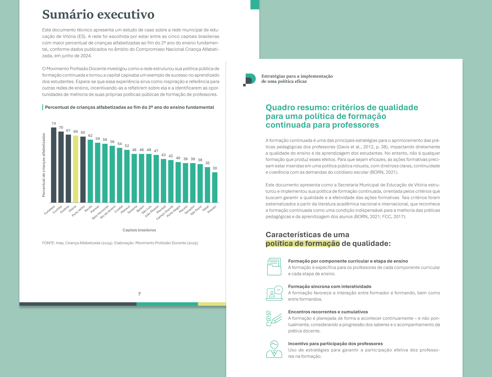 O documento foi desenvolvido com o propósito de investigar e compartilhar as estratégias que levaram Vitória a alcançar resultados excepcionais em alfabetização. O estudo busca oferecer análises aprofundadas das mudanças implementadas desde 2021 e demonstrar como políticas de formação continuada bem estruturadas podem transformar indicadores educacionais, servindo como referência para outras redes de ensino brasileiras.