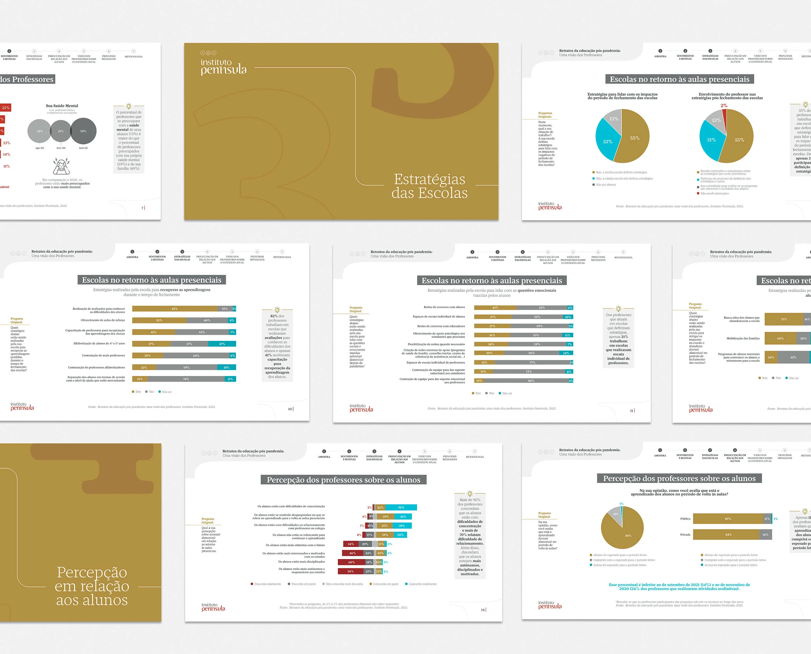 Material editorial desenvolvido para apresentar dados e insights sobre o cenário educacional brasileiro após a pandemia de COVID-19, transformando informações complexas em narrativa visual acessível.
